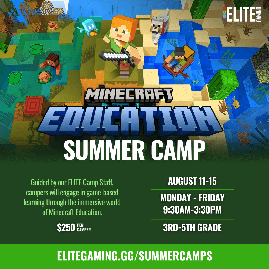 Guided by our ELITE Camp Staff, campers will engage in game-based learning through the immersive world of Minecraft Education.